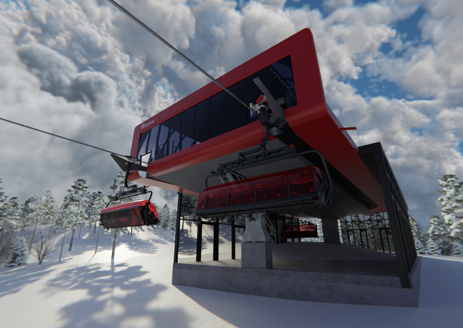In Summer 2022, Kircher Concepts made some additional renderings showing the impressive bottom terminal of Jordan 8, as well as the lifts large media screen.